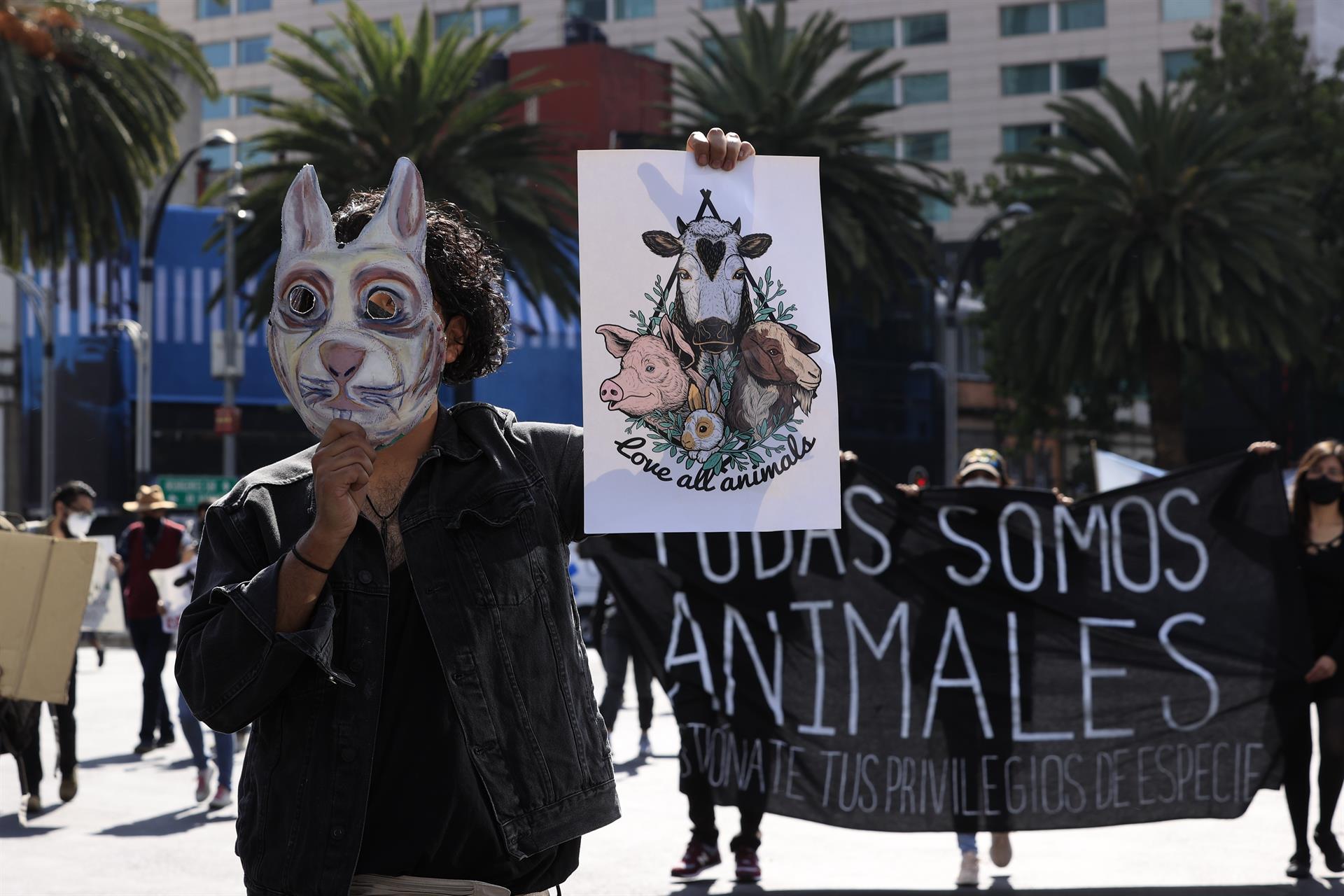 Decenas de activistas marcharon este sábado por las calles de la Ciudad de México en contra del especismo o discriminación de los animales por considerarlos seres inferiores.