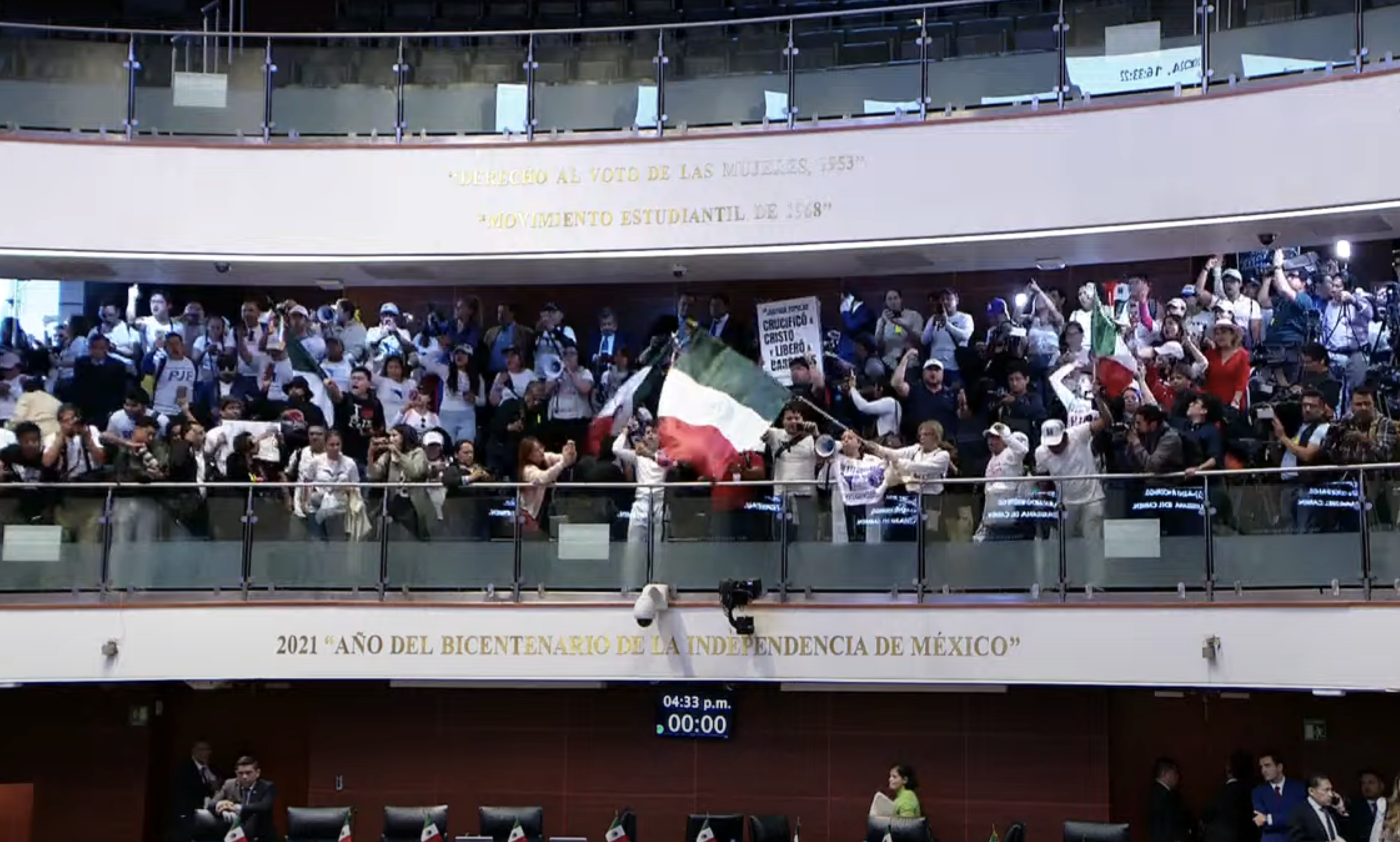 Manifestantes irrumpieron en la sede del Senado de la República, lo que llevó a decretar un receso indefinido y a realizar gestiones para que se convoque a la reanudación de la sesión del Pleno en la Casona de Xicoténcatl y continuar la discusión de la reforma judicial.