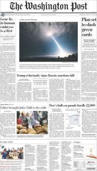 En el ámbito internacional, algunos de los diarios más importantes priorizaron que el presidente Donald Trump dio a conocer una propuesta de ley para modificar el sistema de migración de Estados Unidos, basado en méritos, lo que resultará en el rechazo de cientos de miles de inmigrantes con bajas habilidades.