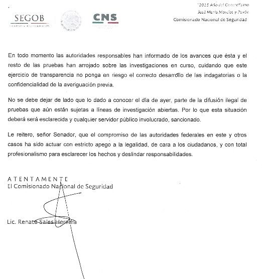 Dentro de una carta que le enviaron al senador Encinas argumentaron que con base en el artículo 60 de la Ley de Seguridad Nacional, ningún integrante de la comisión bicameral podrá publicar la información confidencial.