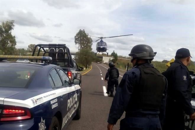 El helicóptero aterrizó sobre la carretera Morelia-Pátzcuaro para sumarse a las 20 patrullas que participaron en el operativo. Los normalistas pretendían empezar a capturar vehículos.