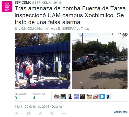 Falsa amenaza de bomba en UAM Xochimilco - uam