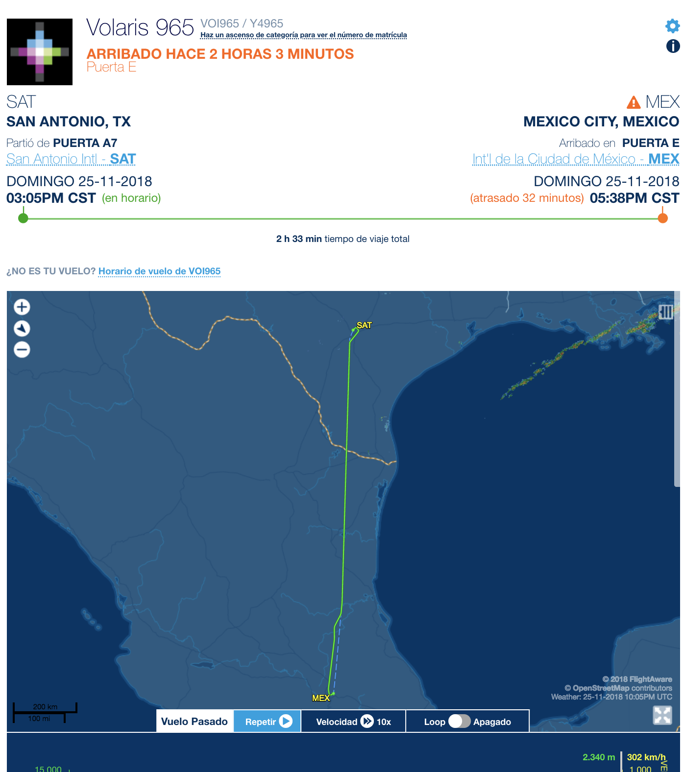 El vuelo de Volaris era proveniente de San Antonio, Texas, con destino a la Ciudad de México.