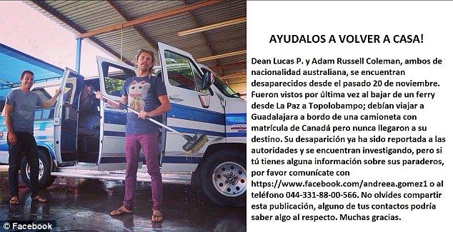 En próximos días se espera que los familiares de Dean y Adam lleguen a México para recabar más información sobre la desaparición de ambos jóvenes.