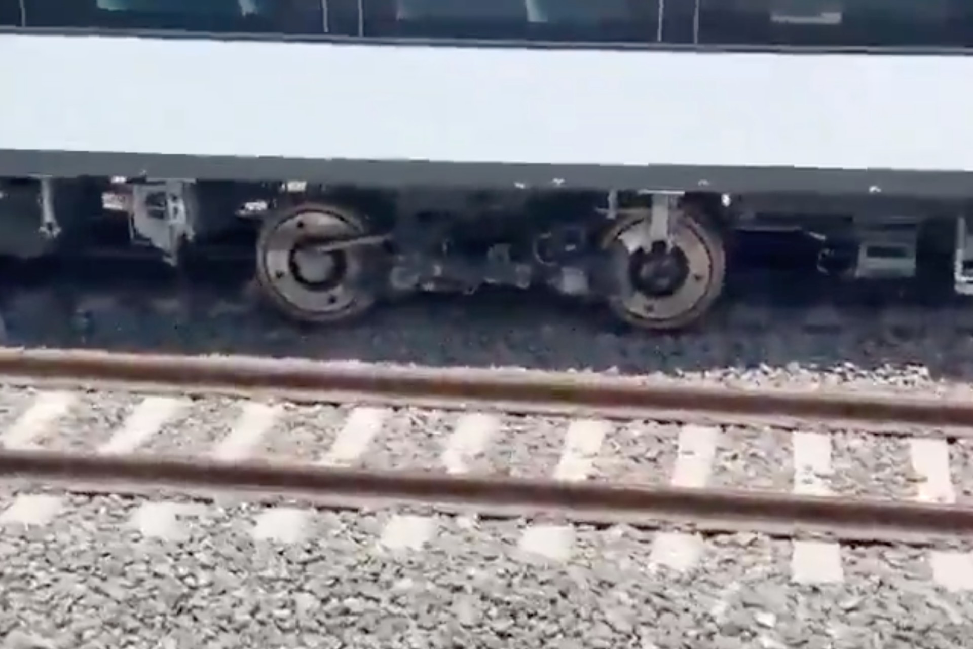 “Ahí está cómo se descarriló, se salió, vean cómo está fuera de las vías del tren”, expresó un usuario que grabó el hecho.