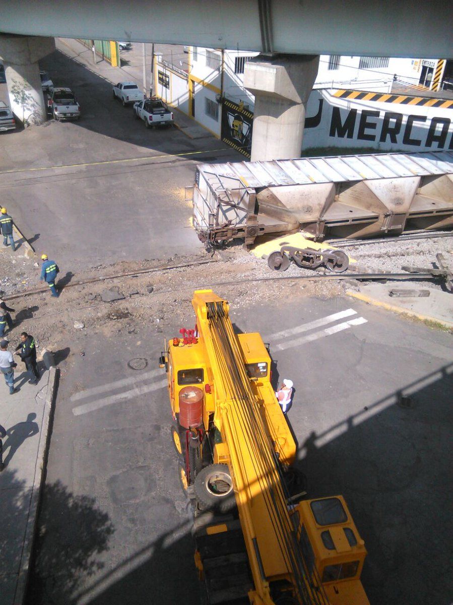 Los vagones, que transportaban maíz, circulaban por la vía a la altura de la Avenida Hidalgo antes del cruce con Jesús Reyes Heroles, en la zona industrial de San Rafael, en el municipio de Tlalnepantla.