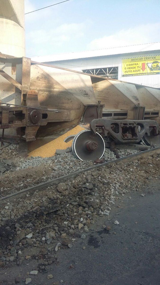 Seis vagones de Ferromex cargados de maíz se descarrillaron en la zona industrial de San Rafael. No se reportan lesionados