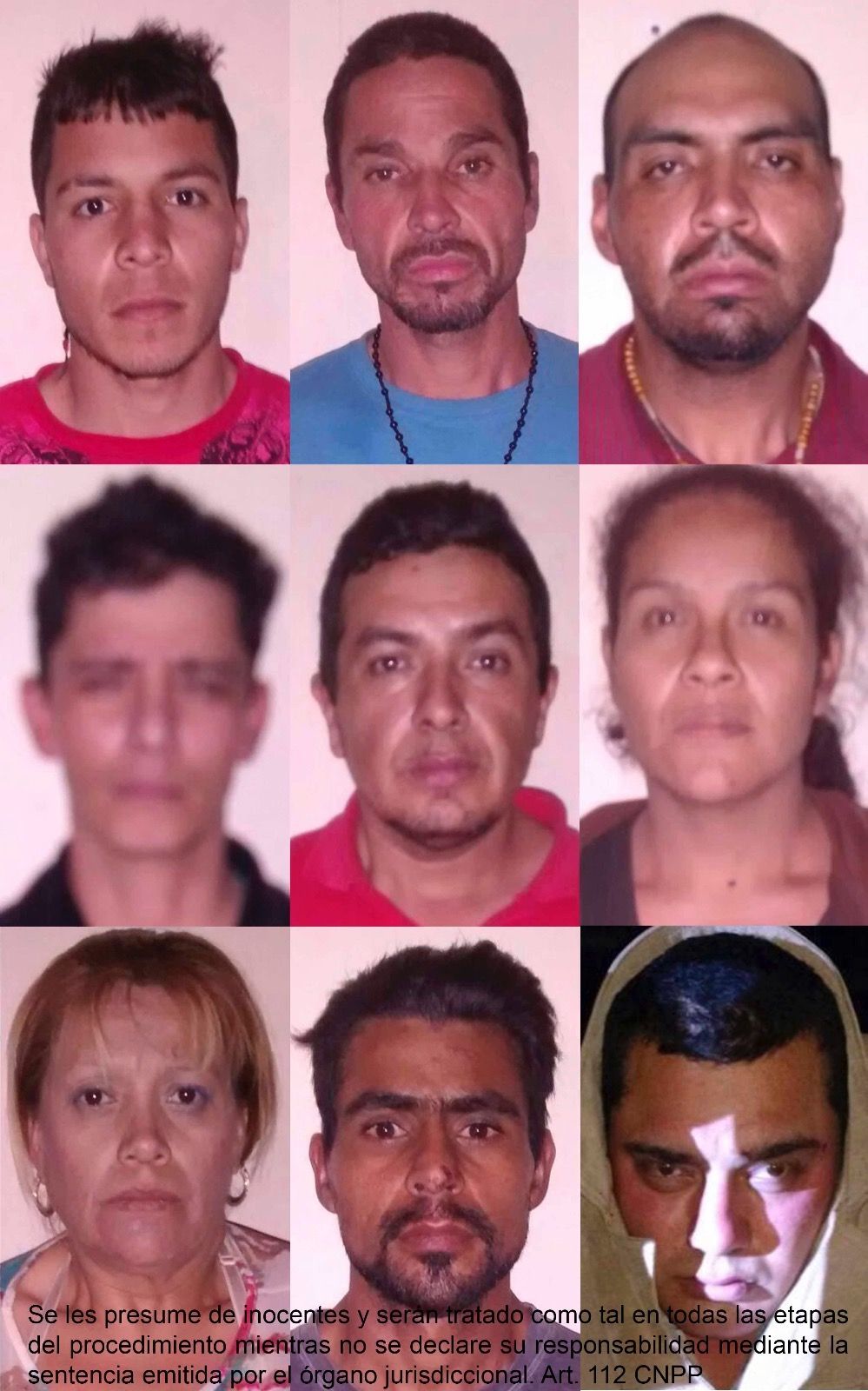 Ahí mismo se llevó acabo la detención de quienes mencionaron responder al nombre de Christian Paul Quezada García de 23 años; Víctor Rubalcaba Cruz de 28 años; José Luis Loran Lebrun de 29 años; Misael Feliciano Tovar Carmona de 32 años; Domingo González Polanco de 37 años; Jesús Enrique Chel Ríos de 37 años; Heriberto Meza Martínez de 44 años; Bertha Alicia Vargas Maldonado de 41 años y Miriam Azucena Díaz Tirado de 37 años.