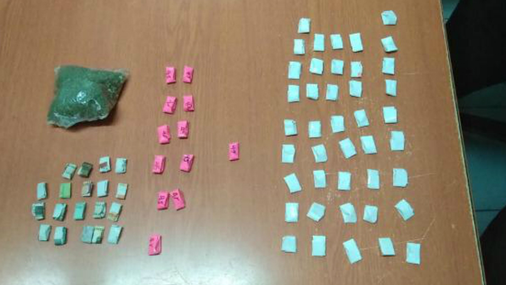 Además, se les encontró una bolsa de lona, color negro, en cuyo interior fueron encontrados 73 envoltorios de papel que contenían polvo blanco, con características propias de la cocaína, así como dos bolsas con hierba verde seca, al parecer mariguana.