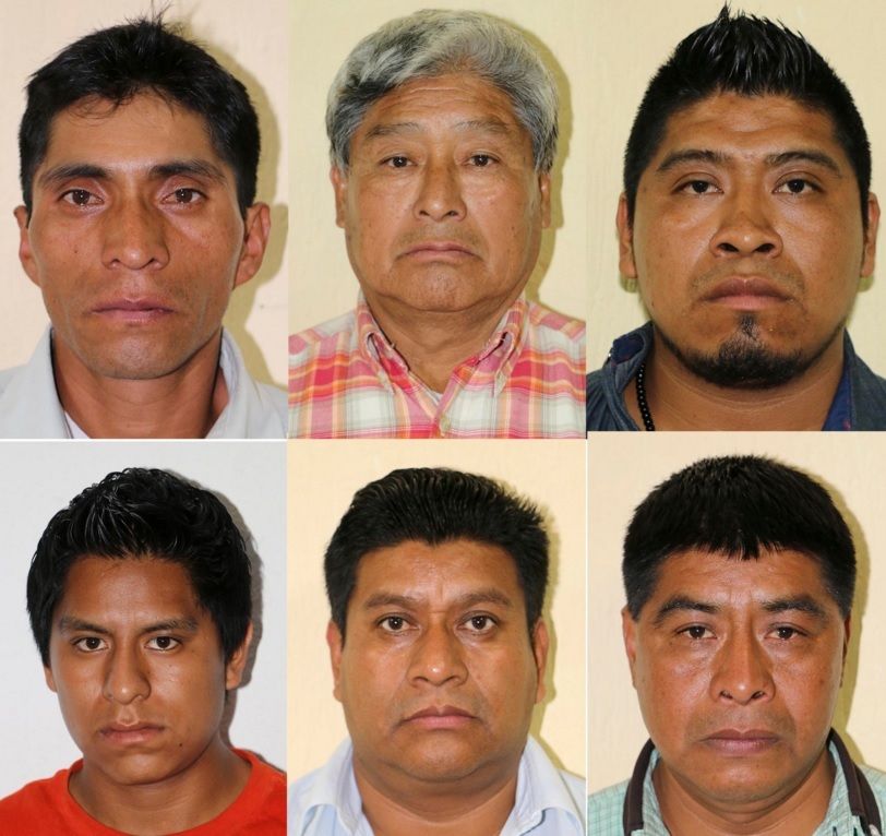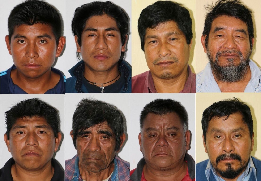 Los detenidos responden a los nombres de Mariano Gómez Encinos, Enrique Gómez López, Benjamín Gómez Sántiz, Leumin Gómez Girón, Joaquín Sántiz Gómez, Pedro Morales López, Enrique Gómez Sántiz, Miguel Sántiz Gómez, y Miguel López Gómez.