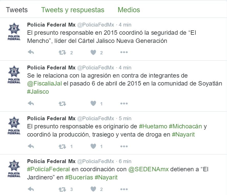 La Policía Federal, a través de su cuenta de Twitter, informó que el detenido fue identificado como “El Jardinero”, y se le acusa de ser el líder en Nayarit de la organización Cártel Jalisco Nueva Generación.