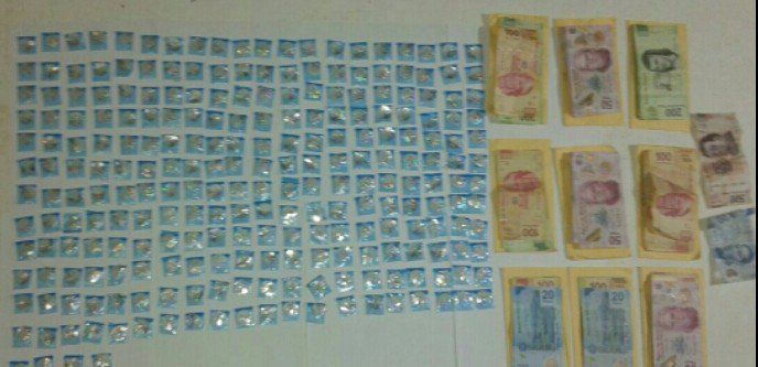 En la inspección, también se les aseguraron una pistola y nueve sobres amarillos que contenían billetes en diferentes denominaciones, sumando la cantidad de 20 mil pesos.