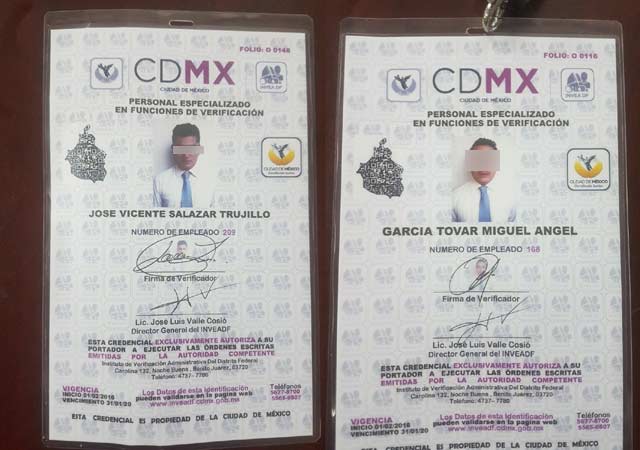 Este viernes fueron detenidos dos hombres, que se hacían pasar como personal del Instituto de Verificación Administrativa (Invea) de la Ciudad de México, cuando retiraban sellos de una gasera suspendida.
