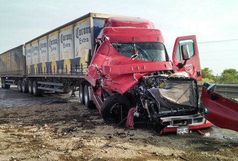 El conductor que manejaba el tráiler de doble remolque con envases de Corona resultó lesionado, pero su condición es estable