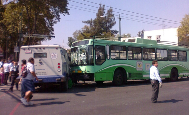 Un choque entre una unidad del Trolebús y una camioneta de valores, dejó un saldo de 20 lesionados.