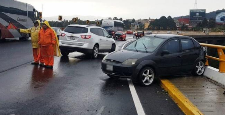 Un choque entre dos automóviles particulares a la altura del kilómetro 27 de la Autopista México-La Marquesa causa afectaciones viales en la zona.