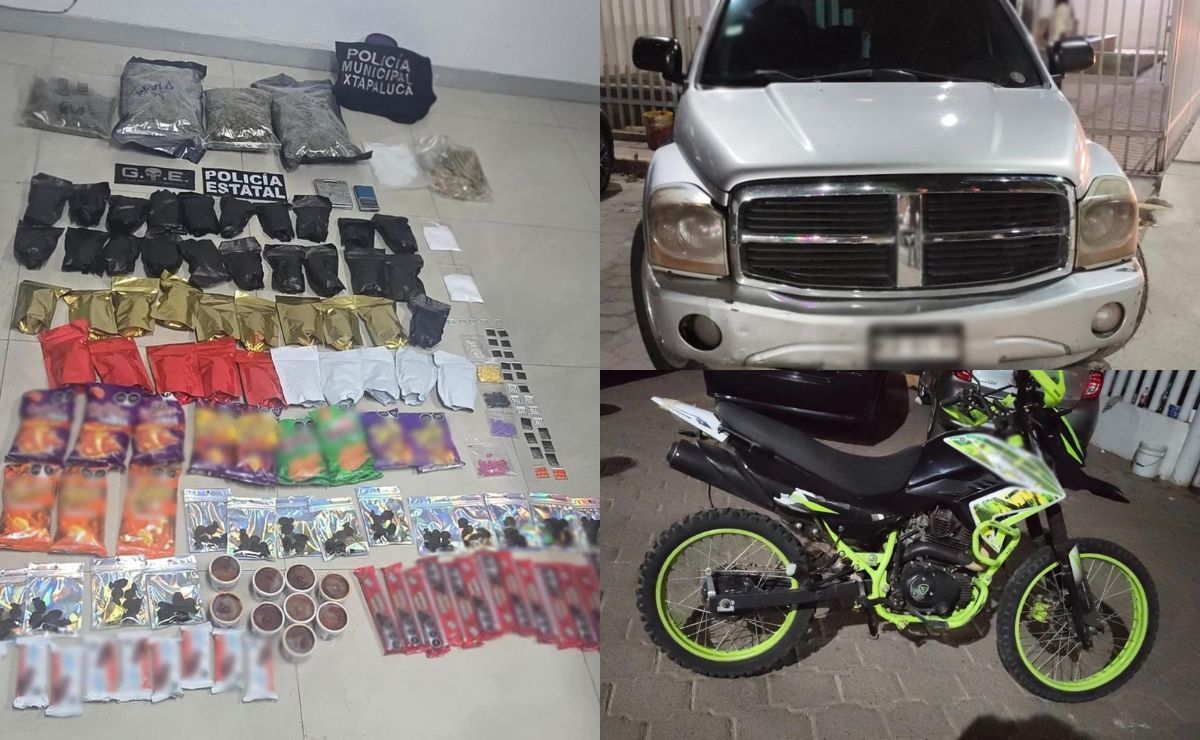 Los policías iniciaron la persecución de las unidades y tras darles alcance procedieron con una revisión de rutina en la que hallaron más de 140 bolsas de plástico con presunta mariguana, cocaína, metanfetamina y crystal, así como dos básculas grameras.