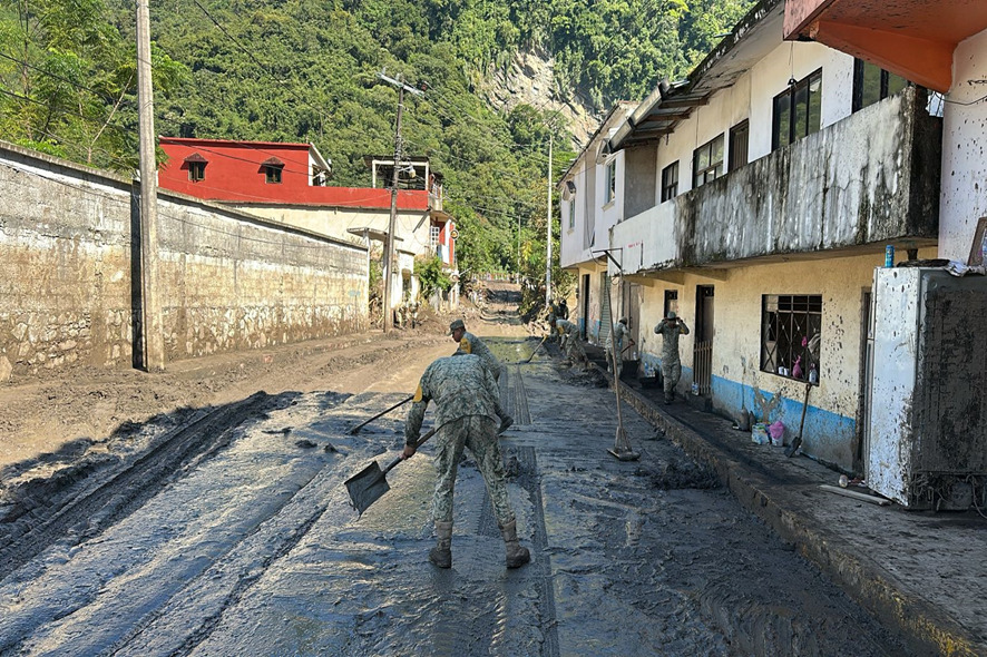 El personal del Ejército, Fuerza Aérea y Guardia Nacional habilitó 46 albergues con 4 mil 610 personas alojadas, desazolvó 58 escuelas y 615 viviendas, retiró 108,674 m³ de tierra y piedras, y limpió 45 mil992 metros lineales de calles y avenidas, beneficiando a las comunidades más afectadas.