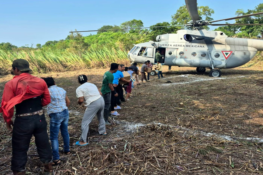 El personal ha empleado 14 aeronaves de ala rotativa, maquinaria pesada, lanchas y vehículos para el transporte de víveres y rescate de personas. Del 9 al 24 de octubre de 2025, se efectuaron 503 operaciones aéreas, mediante las cuales se evacuaron 142 personas y se distribuyeron 45 mil 361 despensas y 26 mil 6 litros de agua vía aérea. Por vía terrestre, se entregaron 13 mil 592 despensas y 40 mil 884 litros de agua embotellada, además de cinco mil 618 kits de medicina básica y 26 mil 496 raciones calientes.