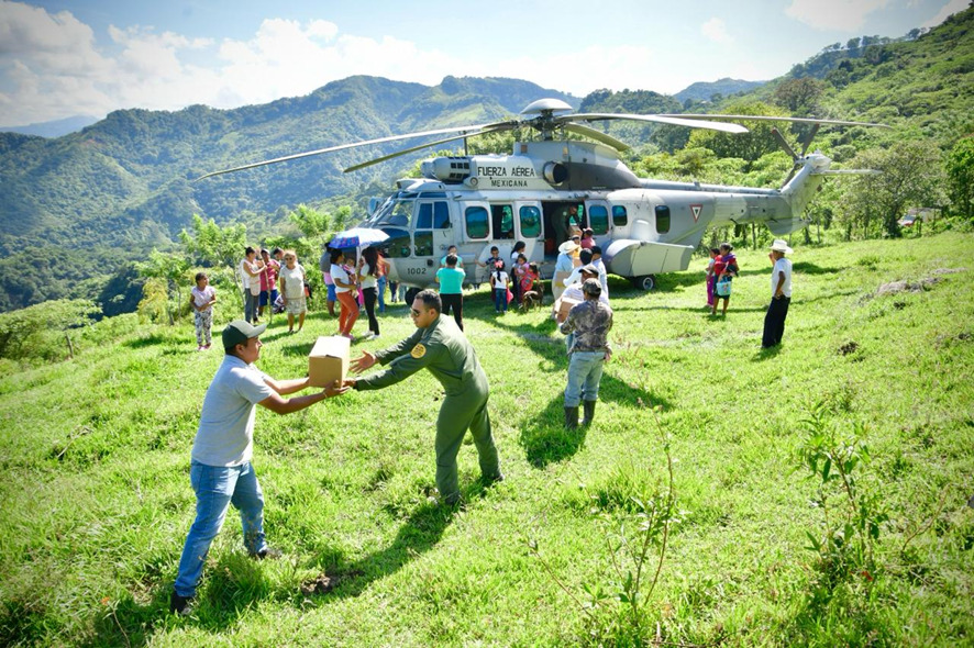 Del 9 al 24 de octubre, se efectuaron 115 operaciones aéreas y se evacuaron 166 personas, además de distribuir 104 mil 929 despensas, 231 mil 971 litros de agua embotellada y 430 mil litros de agua purificada. También se sirvieron 102 mil 200 raciones calientes y se habilitaron 31 albergues con tres mil 146 personas alojadas.