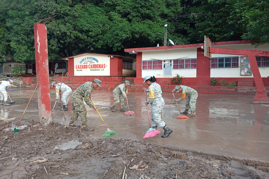 Las tropas realizaron 694 desazolves de viviendas, el retiro de 177 árboles y la remoción de 15,856 m³ de material, con 132,100 metros lineales de calles y avenidas limpiadas. Además, se brindaron mil 43 consultas médicas y se habilitaron 4 albergues con 391 personas alojadas, principalmente en la región Huasteca.
