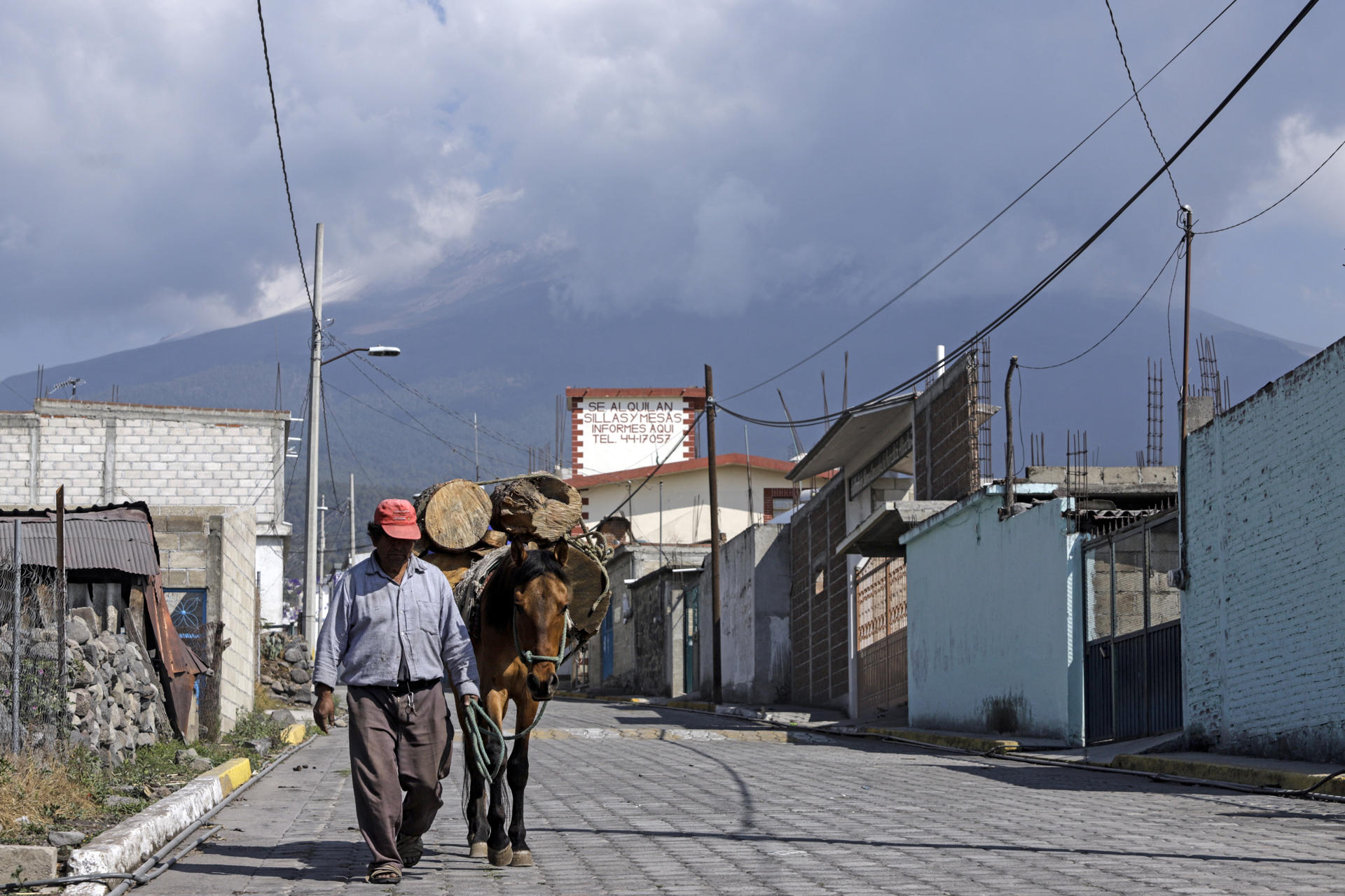 Una persona camina por una calle ante las continuas exhalaciones del volcán Popocatépetl hoy, en la comunidad de San Pedro Benito Juárez, Puebla. Foto de EFE/Hilda Ríos