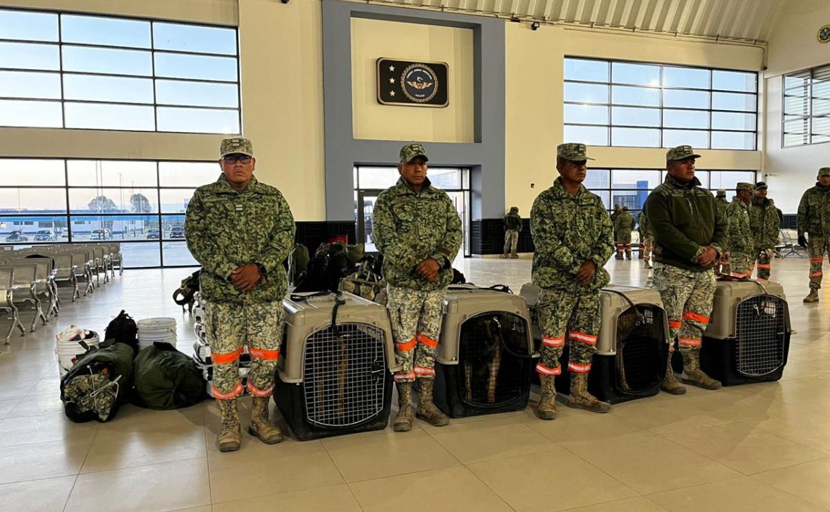 Binomios canófilos del Ejército que participarán en rescate de mineros atrapados en Sinaloa. Foto de Defensa
