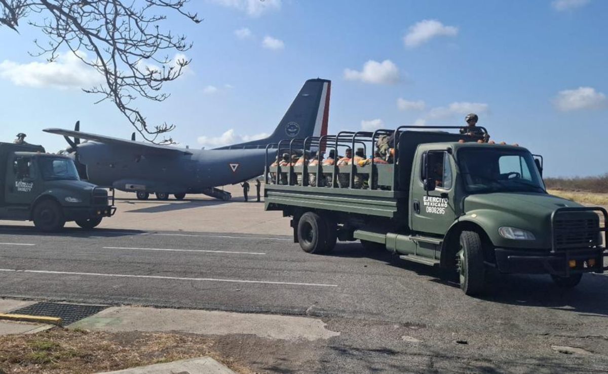 Los elementos se trasladaron a Sinaloa a bordo de una aeronave C27J Spartan de transporte pesado, de la Fuerza Aérea Mexicana.