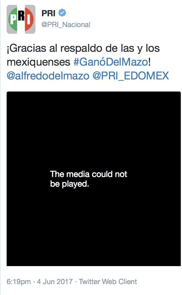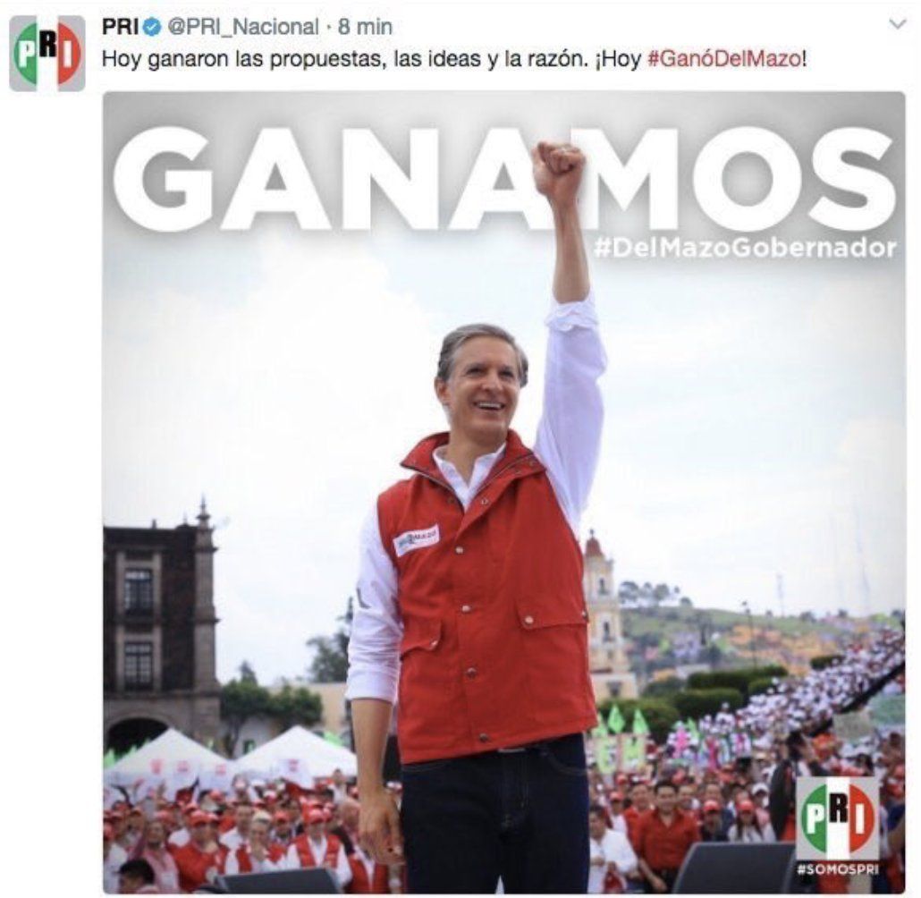 El partido a través de Twitter compartió un video y una foto donde declara a Alfredo del Mazo ganador de las elecciones en la entidad