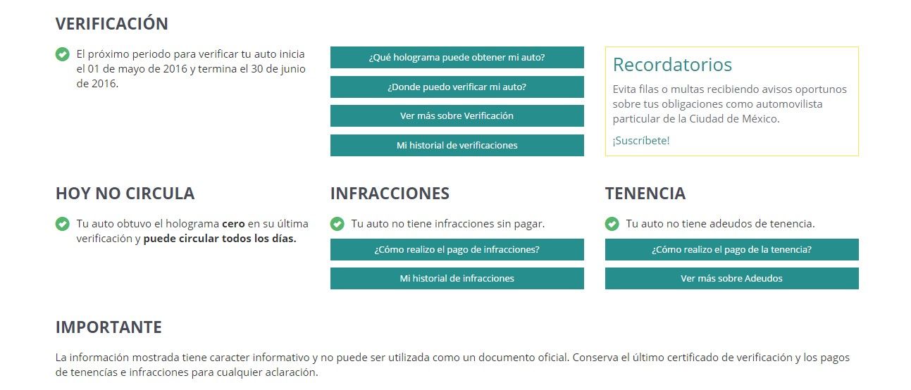 En caso de tener algún adeudo pendiente, el mismo sitio explica cómo realizar el pago y ayuda a mandar recordatorios a un correo electrónico.