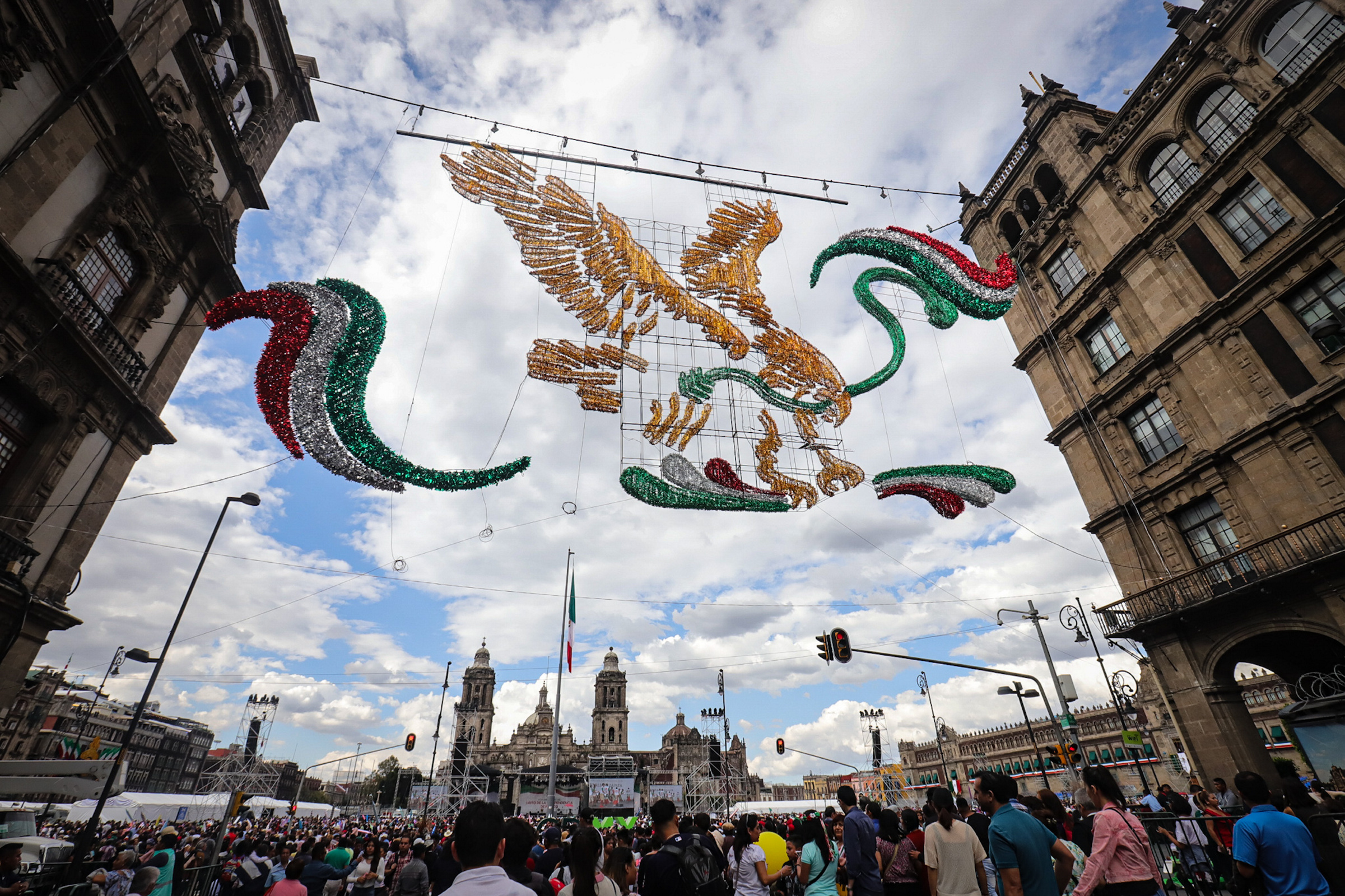 En la plancha de la Plaza de la Constitución se ve el ir y venir de miles de personas, algunas ataviadas con vestimenta típica de las diferentes regiones del país, para festejar su origen mexicano.