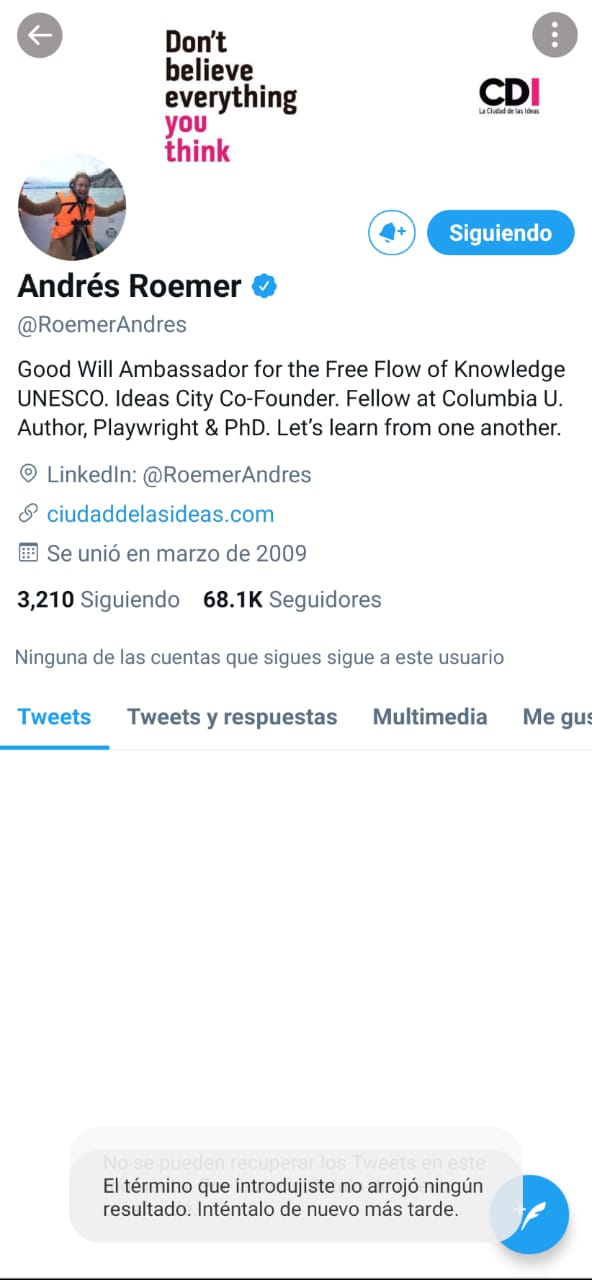 Andrés Roemer 'desaparece' de Twitter tras denuncias por acoso sexual - andres-roemer-cuenta-de-twitter