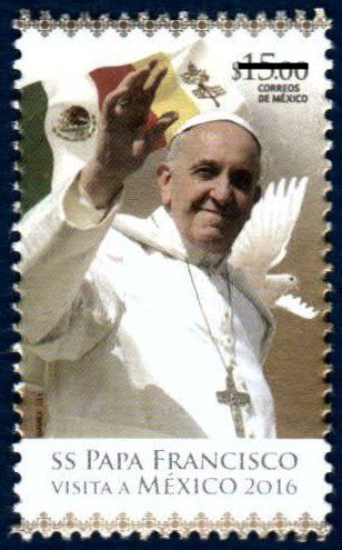 Con motivo de la visita del Papa Francisco, Correos de México emitió una estampilla postal conmemorativa, la cual será puesta en circulación en más de mil 450 oficinas postales del país. El tiraje de la estampilla es de 200 mil piezas, tiene un costo de 15 pesos. En ella se muestra la imagen del Papa … Continued