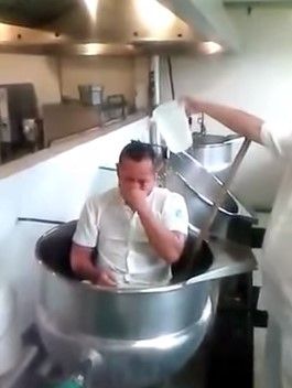 Empleados del IMSS utilizan una olla de la cocina del Hospital de Traumatología y Ortopedia para bañar a su compañero