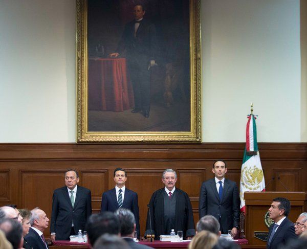 Ante los plenos del alto tribunal, del Consejo de la Judicatura Federal y del Tribunal Electoral del Poder Judicial de la Federación, así como del presidente Enrique Peña Nieto y miembros de su gabinete, Aguilar Morales ratificó su compromiso por el impulso a la protección de los derechos humanos.