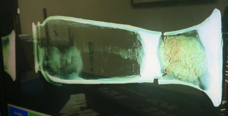 Dichos paquetes fueron escaneados por una máquina de rayos X, la cual mostró formas irregulares en la base de los jarrones.
