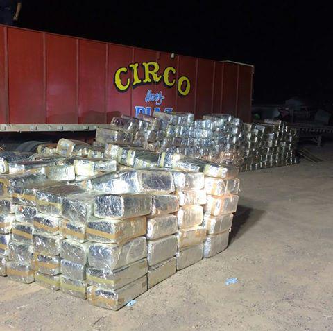 Elementos de la Policía Federal aseguraron en Sonora, un cargamento de tres mil 900 kilogramos de mariguana que eran transportados en un compartimento oculto de un tráiler presuntamente propiedad de una compañía circense.