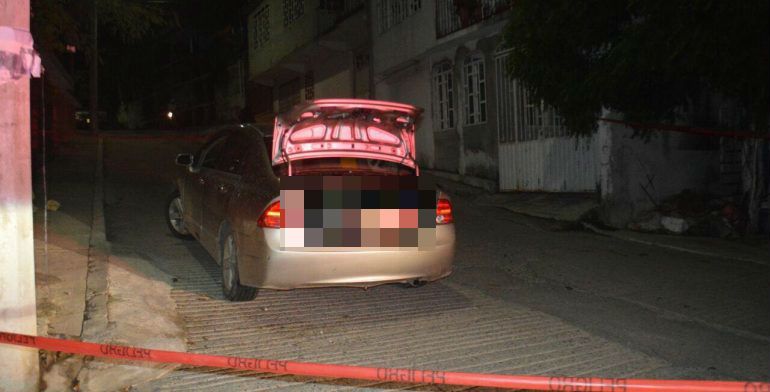 Bolsas de plástico con los restos de un hombre y de una mujer fueron dejados en el interior de la cajuela de un coche en la colonia La Máquina, ubicada en el poblado de La Sabana, en Acapulco, Guerrero.