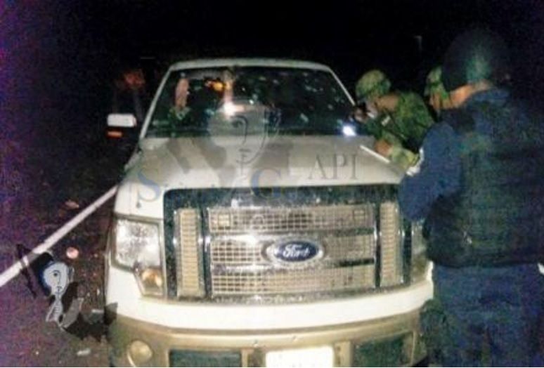 Al lugar llegaron fuerzas policíacas federales y estatales, pero a su arribo encontraron únicamente dos camionetas baleadas y cartuchos de fusiles AR-15 y AK-47, así como granadas de fragmentación e indumentaria militar.