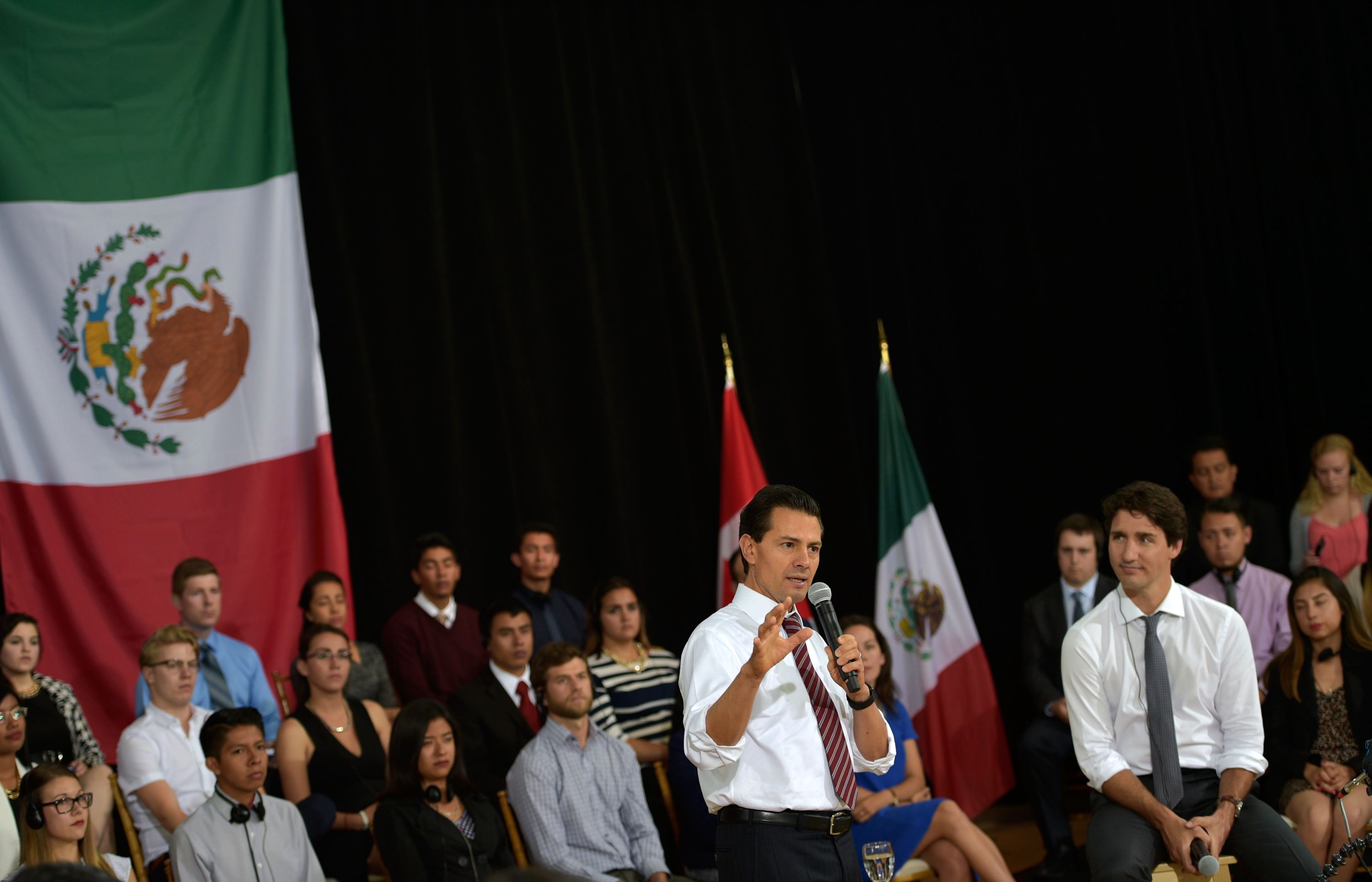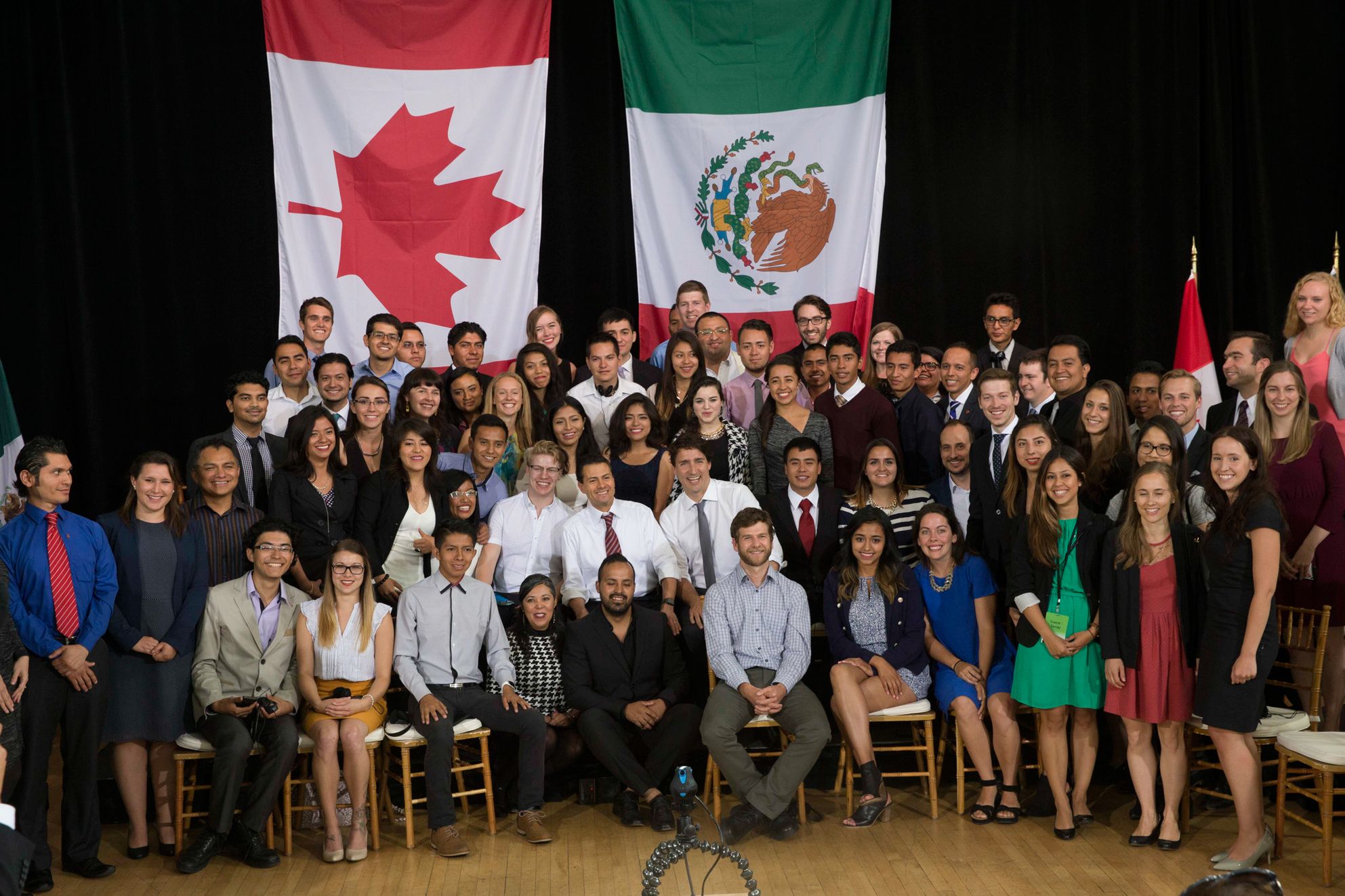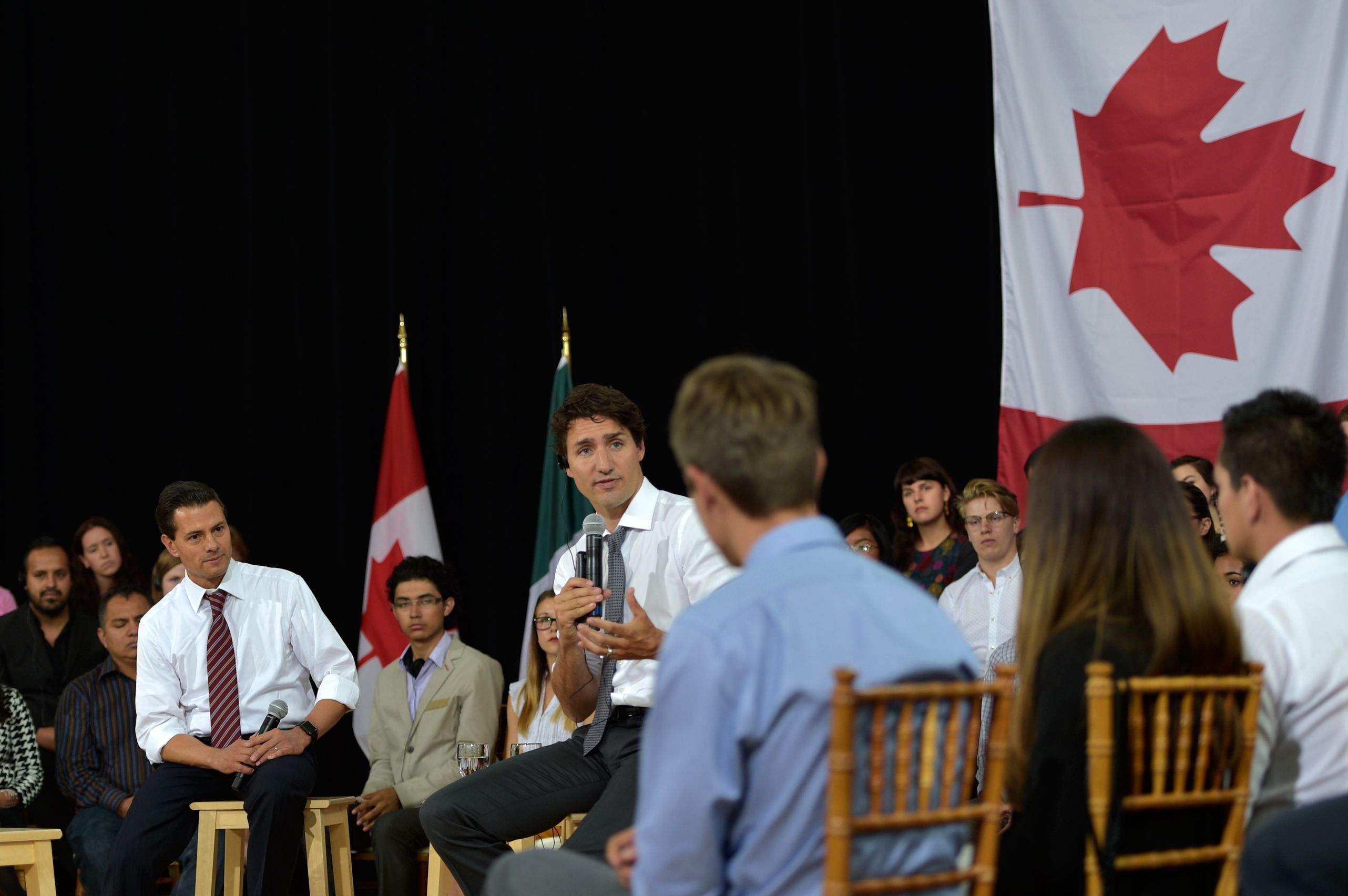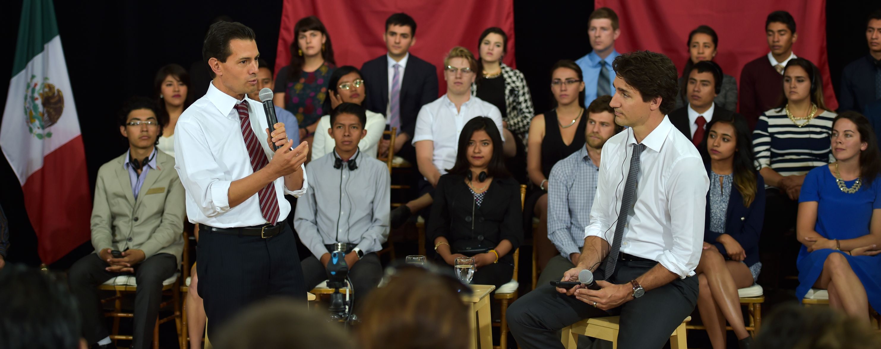 Acompañado del primer ministro canadiense, Justin Trudeau, el mandatario federal realizó un encuentro con aproximadamente medio centenar de jóvenes de distintos países, incluidos mexicanos, que estudian en Canadá.