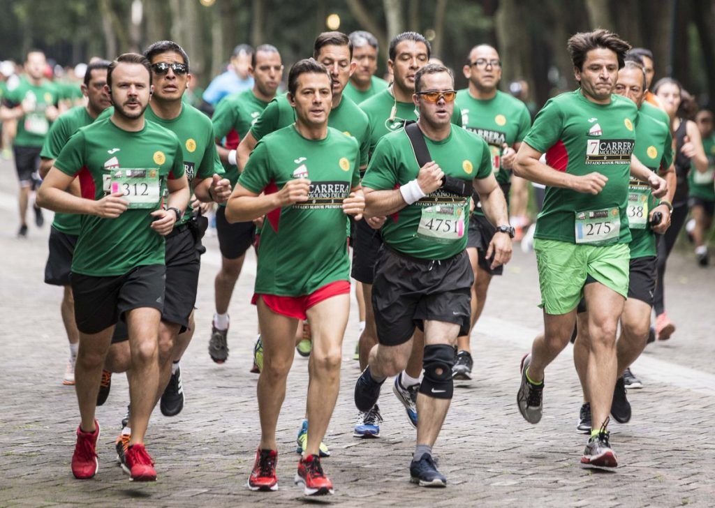El presidente Enrique Peña Nieto, encabezó esta mañana el inicio de la séptima carrera Molino del Rey que cada año organiza el Estado Mayor Presidencial (EMP), en las inmediaciones de la Residencia Oficial de los Pinos y en el Bosque de Chapultepec.