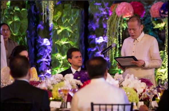 Luego de la participación en esta reunión, Peña Nieto asistió a la cena de bienvenida a los líderes del APEC que ofreció el presidente de Filipinas, Benigno Aquino III, en la que se presentó un espectáculo cultural.