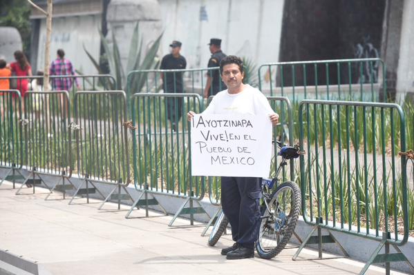 Los padres de los normalistas, junto con miembros de organizaciones civiles, arribaron a bordo de tres autobuses, bajo un amplio dispositivo de seguridad.