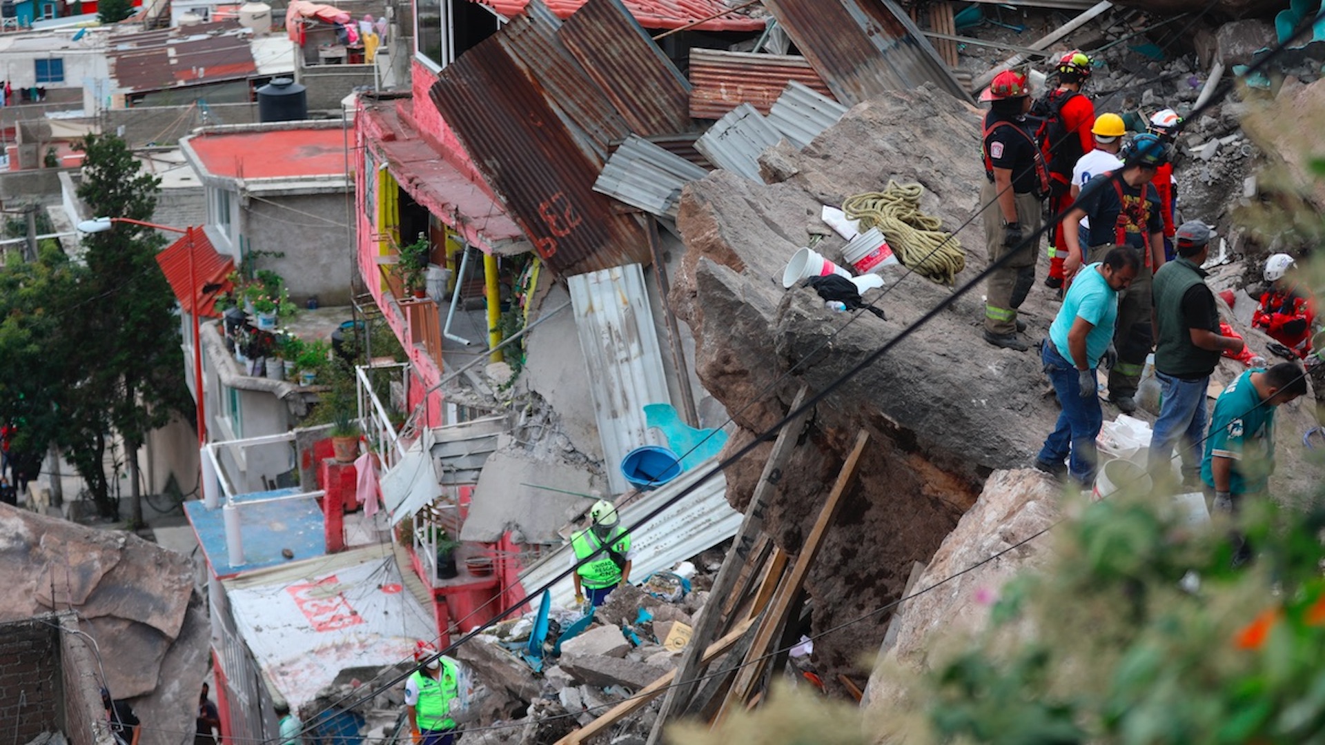 Según explicó en el lugar de los hechos el alcalde de Tlalnepantla, Raciel Pérez Cruz, dos grandes rocas se deslizaron aplastando las casas, por lo que la zona permanece en riesgo por posibles derrumbes.