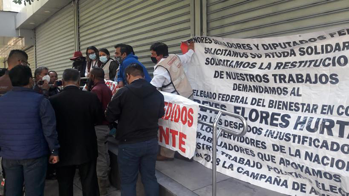 Los manifestantes exigen su restitución inmediata dentro de la Secretaría de Bienestar así como el pago de salarios caídos, toda vez que llevan hasta cinco meses sin cobrar.