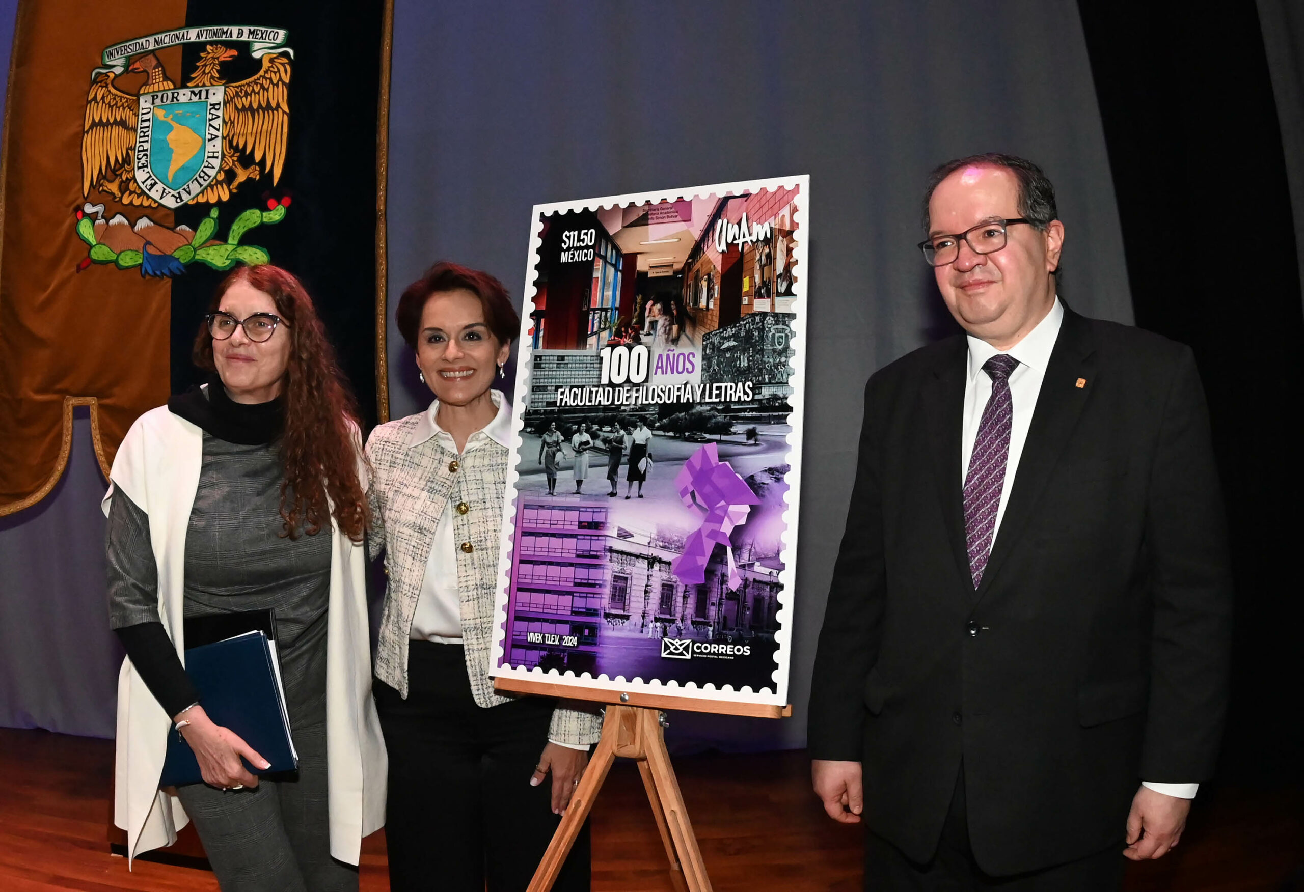 Agradeció también al Servicio Postal Mexicano su sensibilidad y generosidad para perpetuar el centenario de la FFyL, destacando que sus estudiantes, personal docente, trabajadores y egresados son su alma y quienes mantienen vivo su legado.