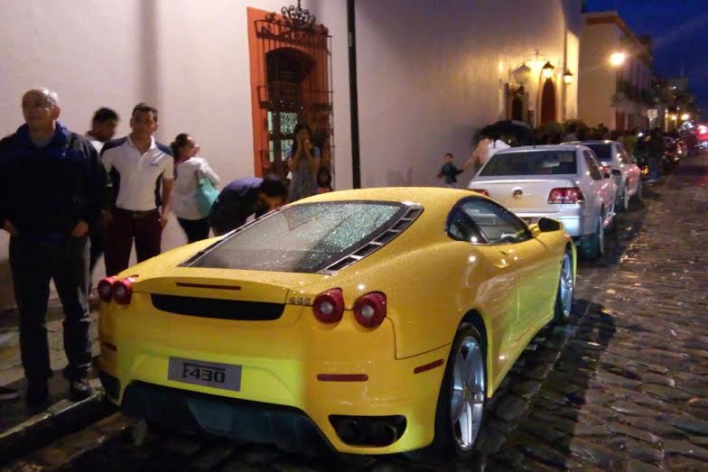 En el centro histórico de la capital del estado, estacionados frente a un hotel que se ubica en este sitio, estaban 2 vehículos Ferrari y algunas motocicletas BMW.
