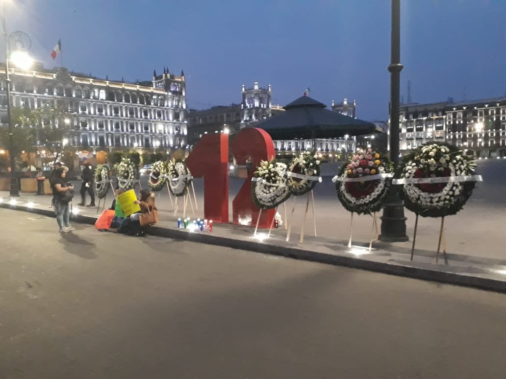 Familiares de víctimas del New’s Divine colocan antimonumento en el Zócalo capitalino