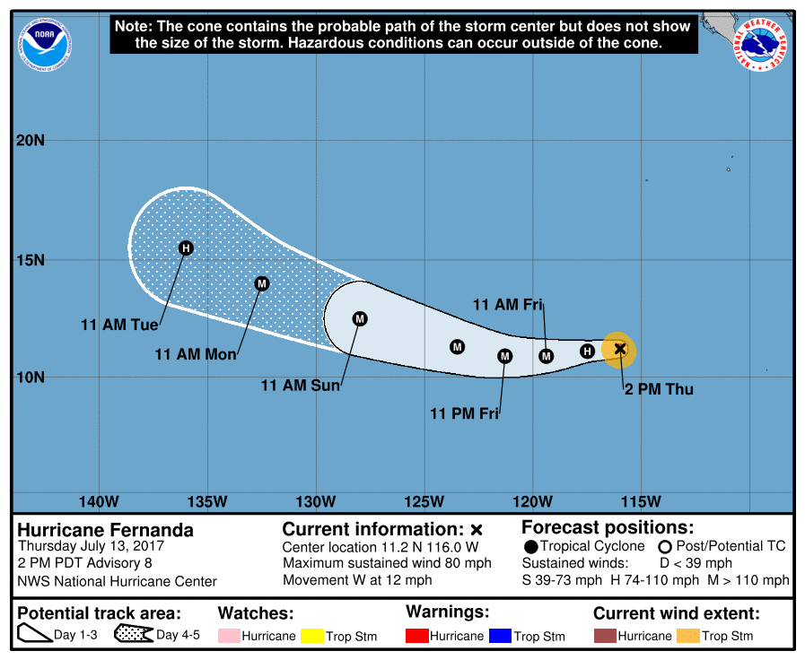 El Meteorológico destacó que Fernanda presenta desplazamiento al oeste, sin afectar las costas mexicanas.
