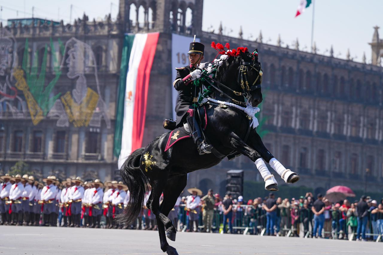 También vieron acción 100 charros, 44 civiles, 62 niños, 34 vehículos terrestres, nueve vehículos antiguos, 503 caballos, 23 aeronaves, tres águilas. Sin novedad”, refirió.